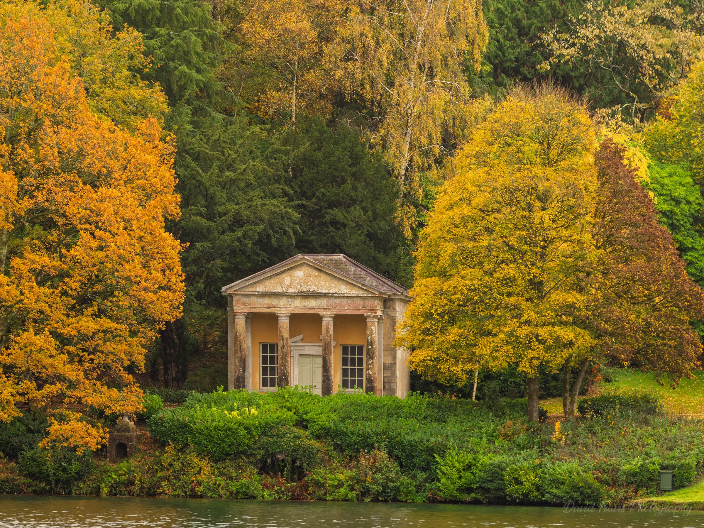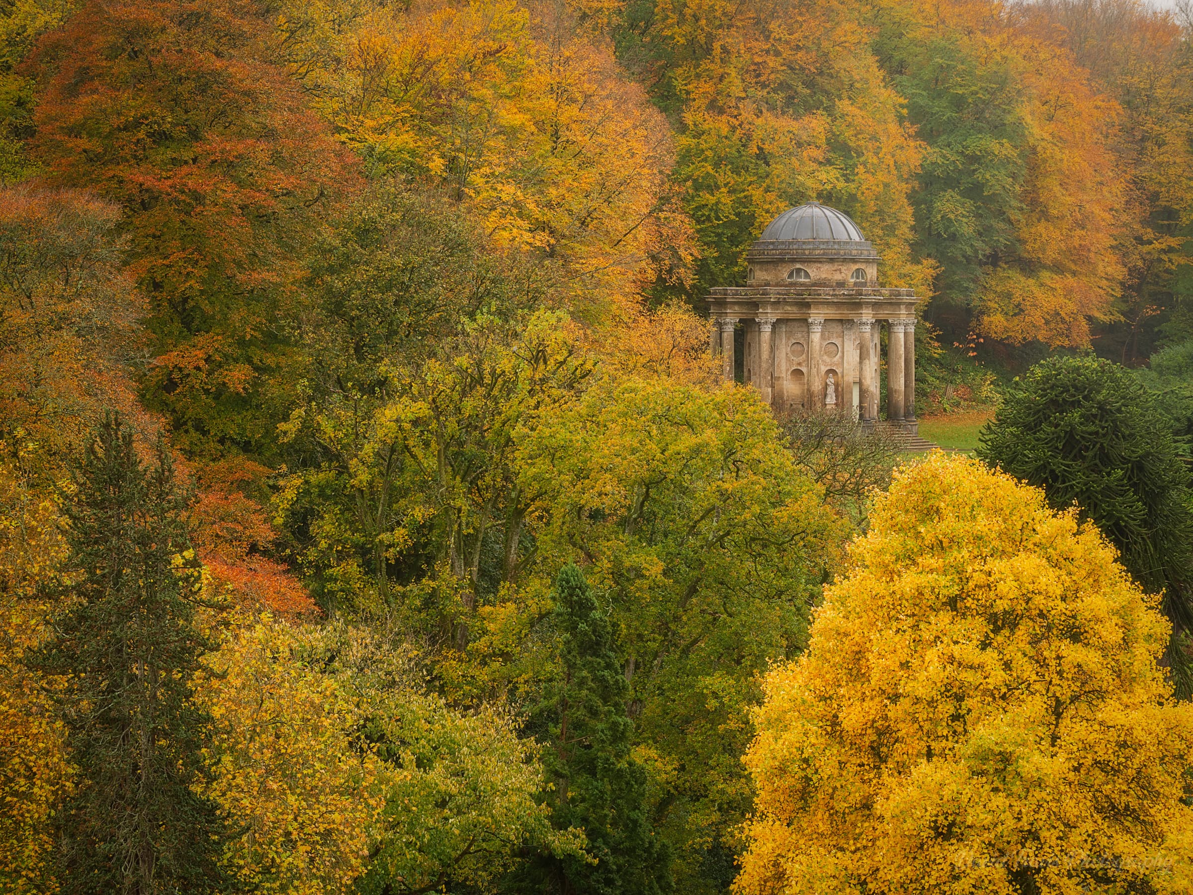 On a hill overlooking the gardens sits the Temple of Apollo, one of a number of temples inspired by scenes of the Grand Tour of Europe. It did look pretty fantastic framed in the autumn foliage.